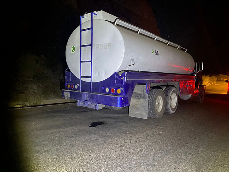 Durante la acción policial se le localizaron dentro de la unidad cerca de 20 mil litros de líquido con las características de hidrocarburo, por lo que fue resguardada y posteriormente trasladada a las autoridades competentes.