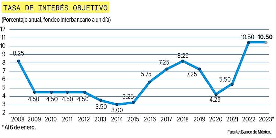 El Banco de México seguirá subiendo la tasa de interés de referencia este año y el primer ajuste se hará el 9 de febrero.