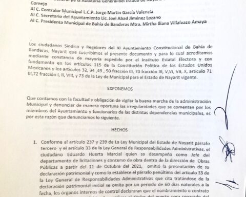 Read More »Siete Regidores y el síndico municipal de Bahía de banderas han presentado una denuncia ante las autoridades estatales para detener lo que