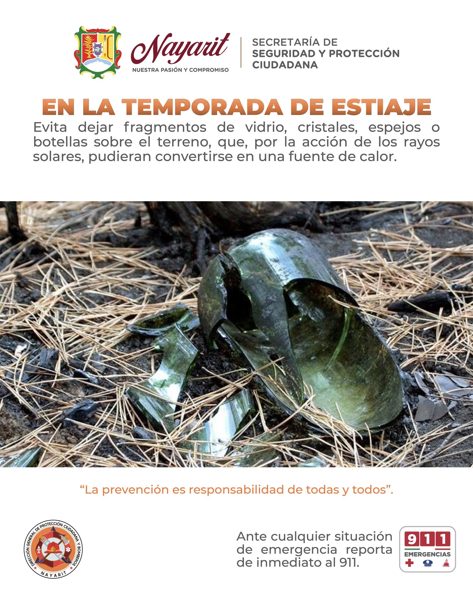 Evite tirar botellas o vidrios, ya que el efecto lupa o rayo de sol puede originar un incendio.
