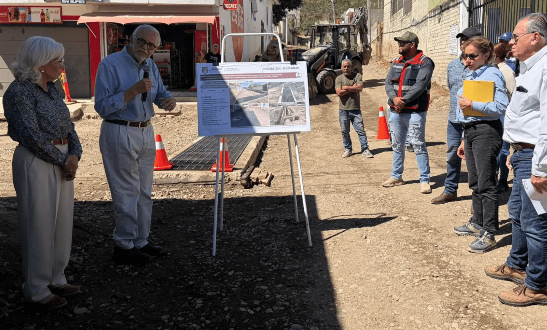 Durante la visita participaron funcionarios estatales y autoridades municipales quienes revisaron el avance de los trabajos y dialogaron con habitantes de la zona.