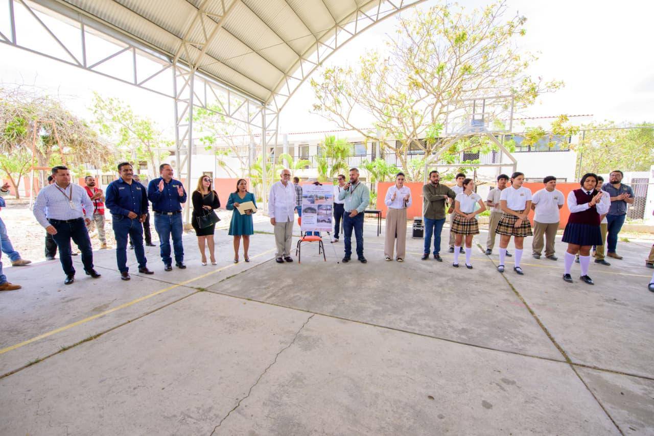Navarro Quintero informó que también se atenderá el problema de inundaciones en la cancha y se dotará a la escuela de computadoras y un nuevo transformador, con el objetivo de garantizar que las y los 163 estudiantes cuenten con un espacio digno y seguro para su desarrollo.