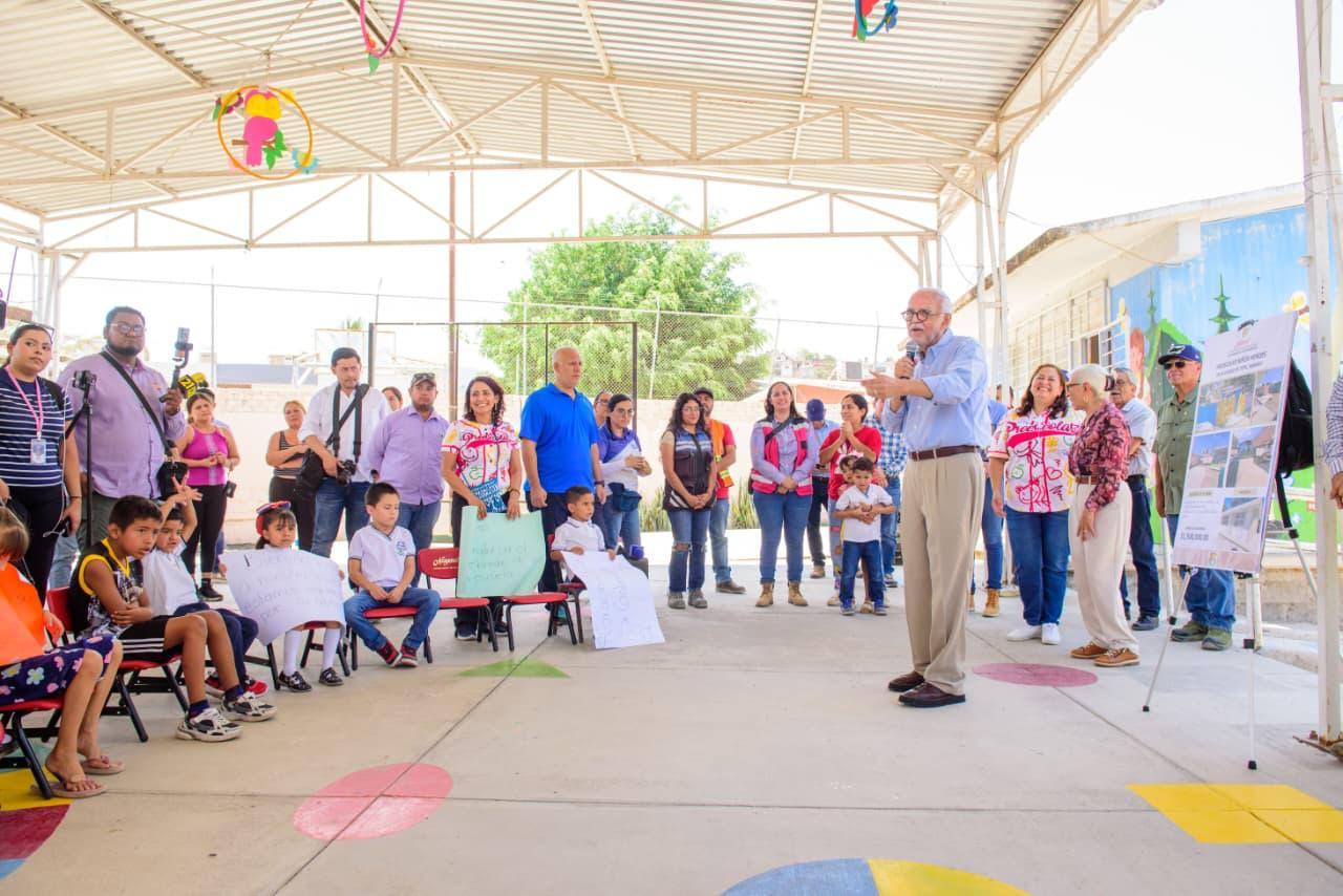 Navarro Quintero impulsa obras en preescolar Niños Héroes para mejorar espacios de aprendizaje y alimentación.