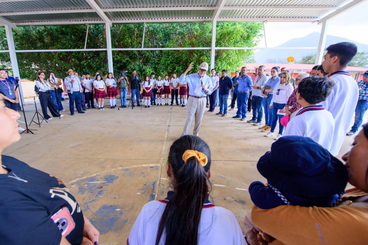 Navarro Quintero atiende invitación de estudiante y refuerza apoyo a telesecundaria en San Luis de Lozada.