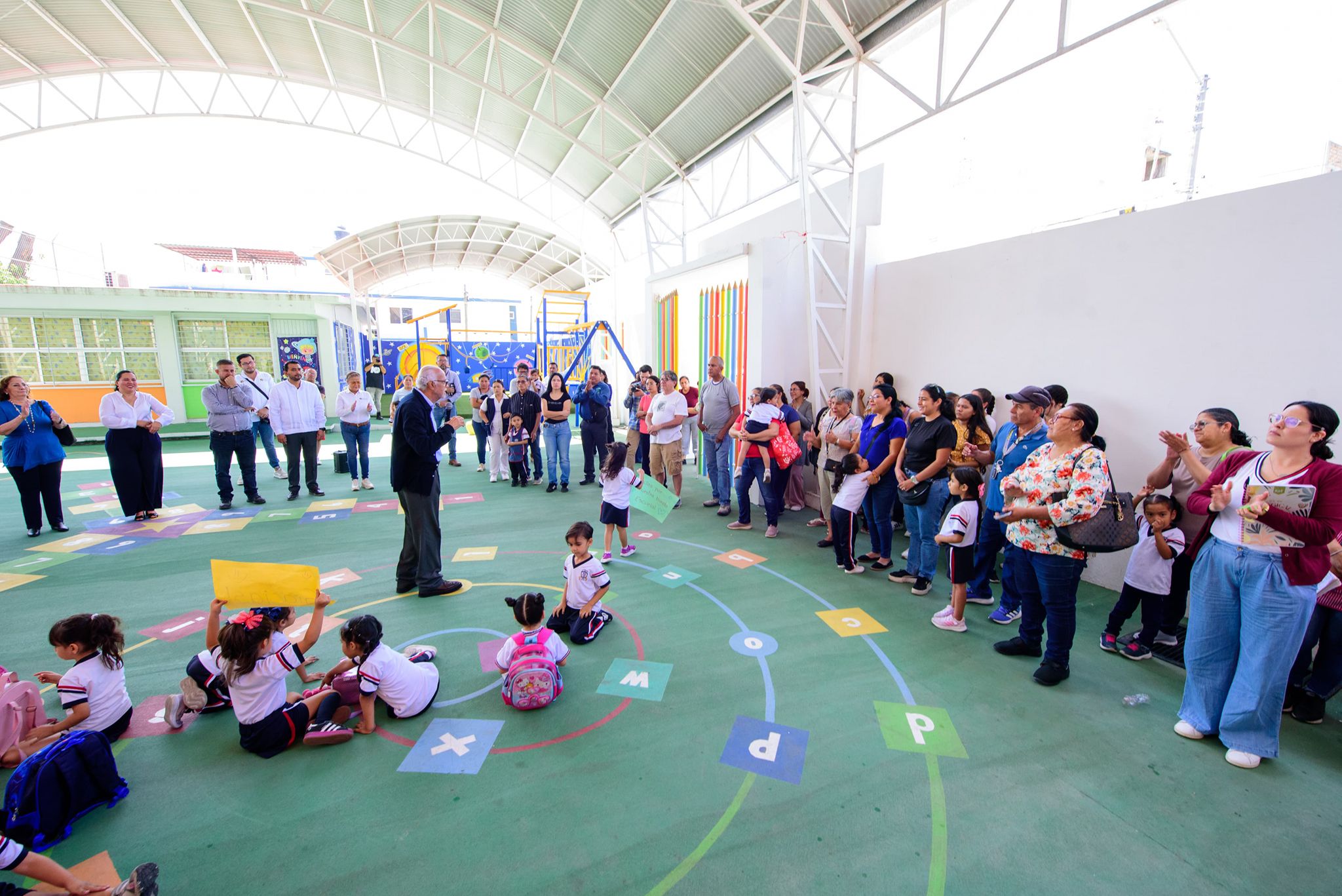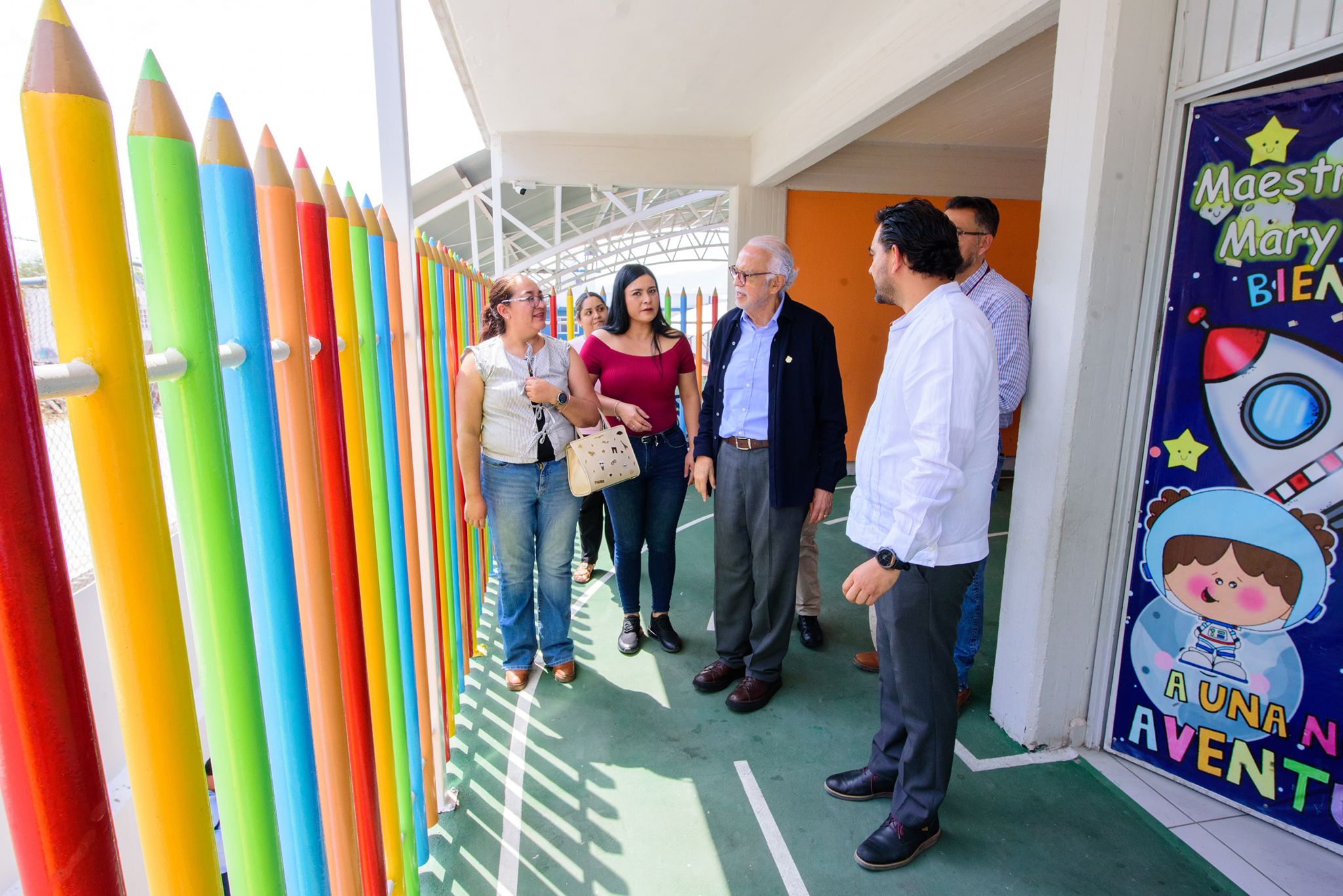 El gobernador del estado, Miguel Ángel Navarro Quintero, visitó el preescolar Promotoras Sociales, en Tepic, donde se llevaron a cabo obras de mejora que incluyeron la construcción de un muro perimetral, la instalación de piso y la edificación de un domo en la plaza cívica del plantel, lo que permitirá que las niñas y los niños realicen sus actividades protegidos del sol y la lluvia.