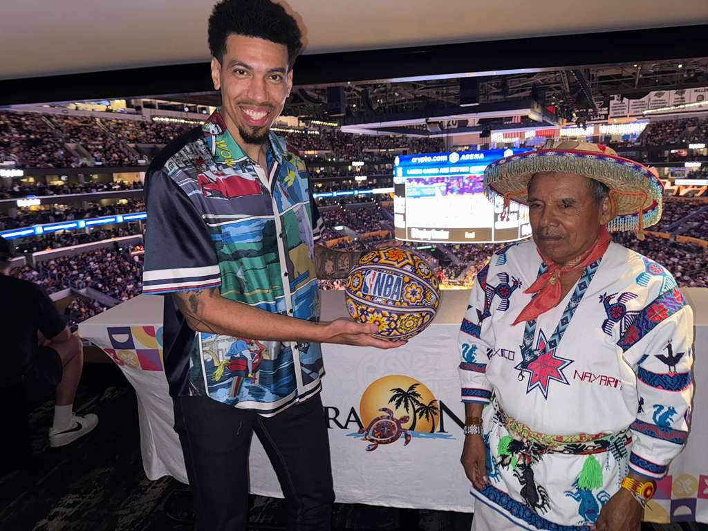 Entre los momentos más significativos destacó la entrega del balón de juego por parte de un representante de Nayarit y de la comunidad Wixárika al referee del partido, como símbolo de unión cultural entre México y Estados Unidos. Asimismo, se obsequió un balón intervenido con arte Wixárika a la leyenda de la NBA Danny Green, proyectando la identidad y el talento artesanal del estado en un escenario global.
