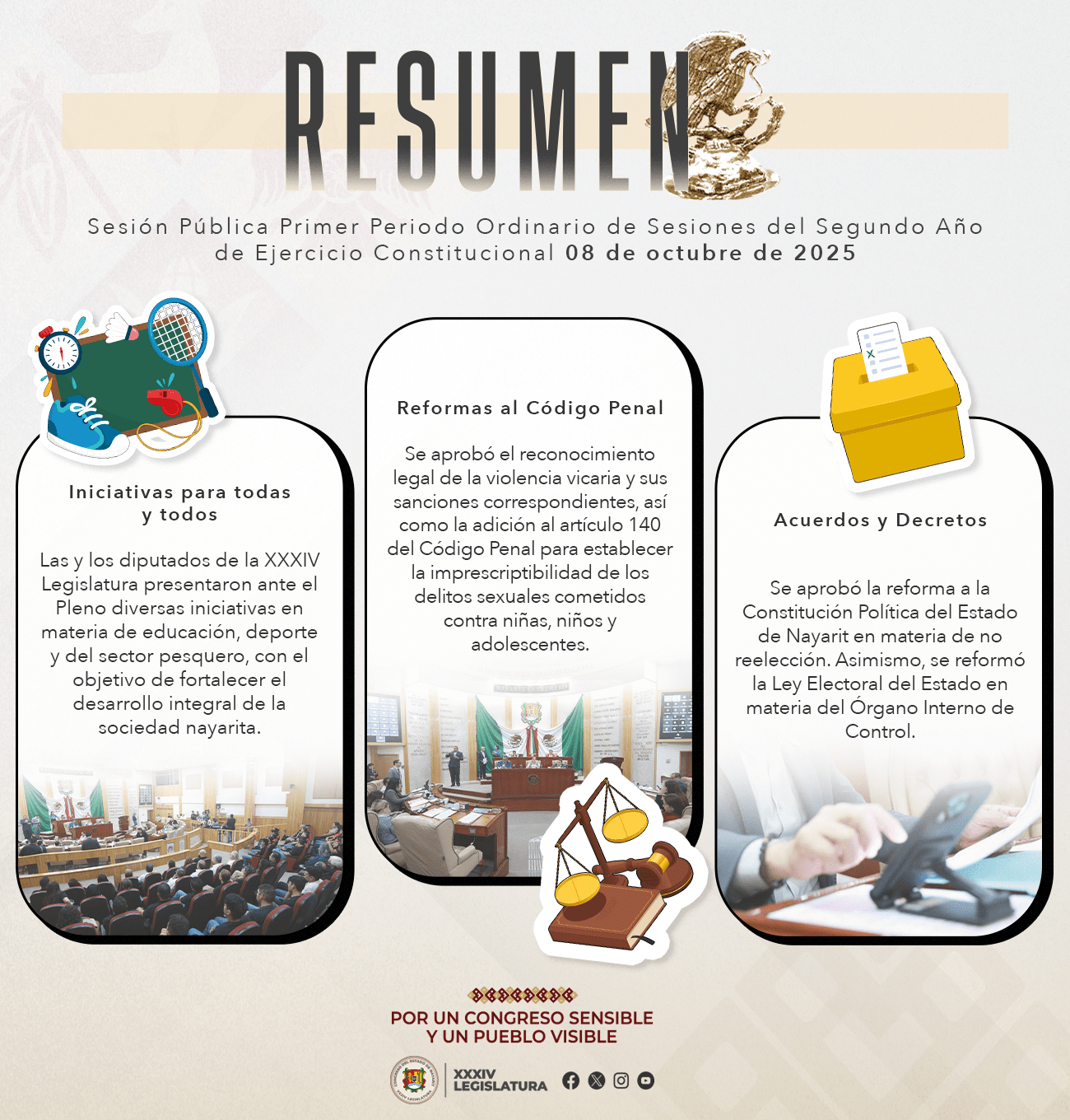 Nayarit Más leyes, más justicia, más futuro. octubre 8, 2025 El Congreso de Nayarit protege a niñas, niños, adolescentes y mujeres.