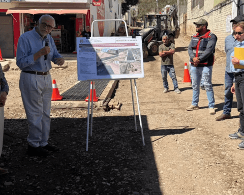 Durante un recorrido por la colonia Adolfo López Mateos en Tepic, el gobernador Miguel Ángel Navarro Quintero supervisó trabajos de pavimentación y