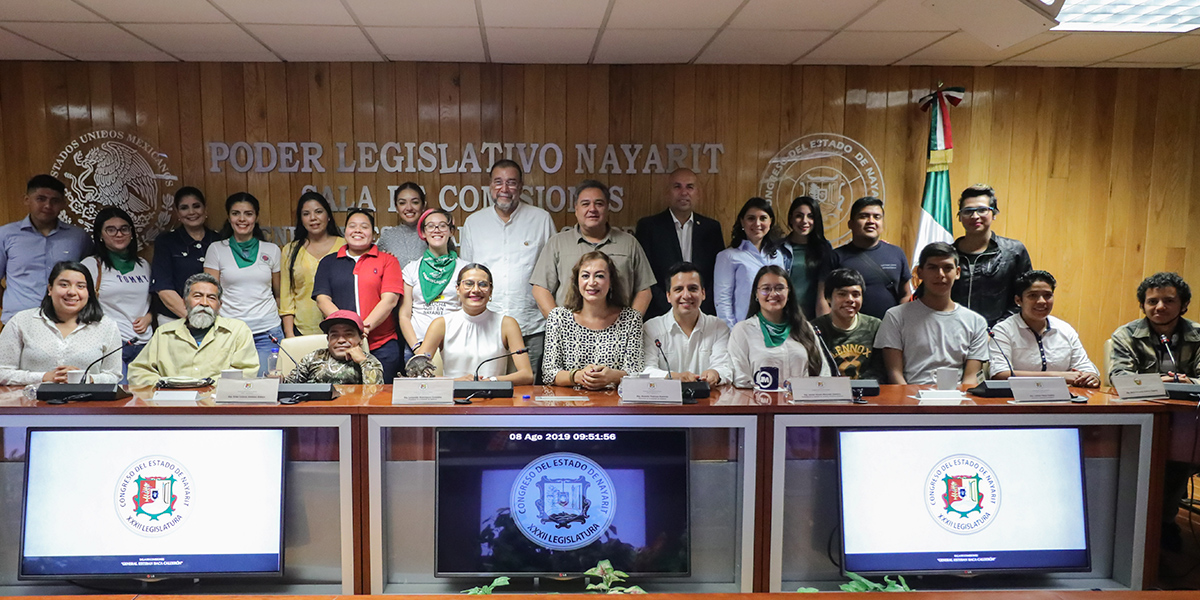 Las personas con discapacidad auditiva, de talla pequeña, mujeres del movimiento feminista, la población LGBT+, miembros de la comunidad artística, líderes de los pueblos originarios y sociedad nayarita fueron recibidos por diputadas, diputados y la presidenta del Voluntariado del Congreso, señora Yolanda Gutiérrez, quienes escucharon sus planteamientos referentes a la discriminación que reciben todos los días, razón por la que hicieron entrega de tal propuesta de reforma.