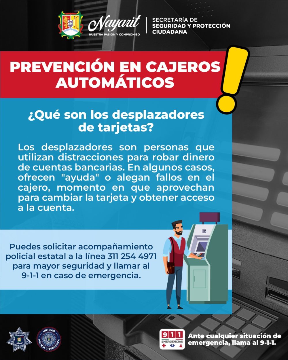 La Secretaría de Seguridad y Protección Ciudadana de Nayarit te brinda la siguiente información de importancia para que evites ser víctima de los desplazadores de tarjetas.
