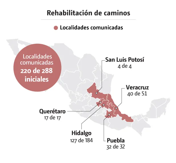 Puntualizó que en Puebla, Querétaro y San Luis Potosí ya no hay localidades incomunicadas.