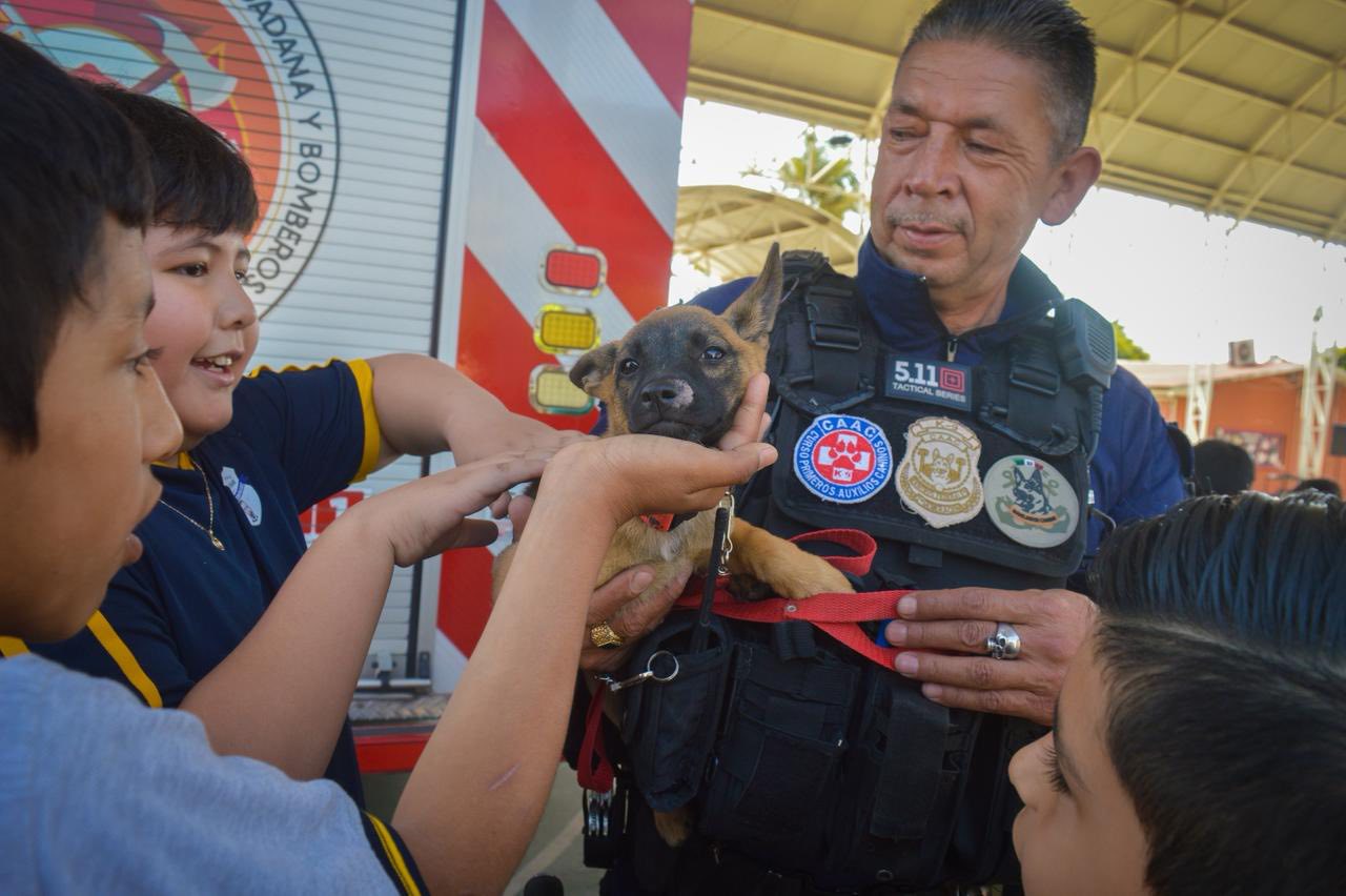 En esta visita participaron la Unidad Cóndor de la Policía Estatal, elementos del Cuerpo de Bomberos del Estado y la Unidad K9 de la Policía Estatal, quienes desarrollaron dinámicas orientadas a fortalecer la cultura de prevención y la confianza en las instituciones de seguridad.