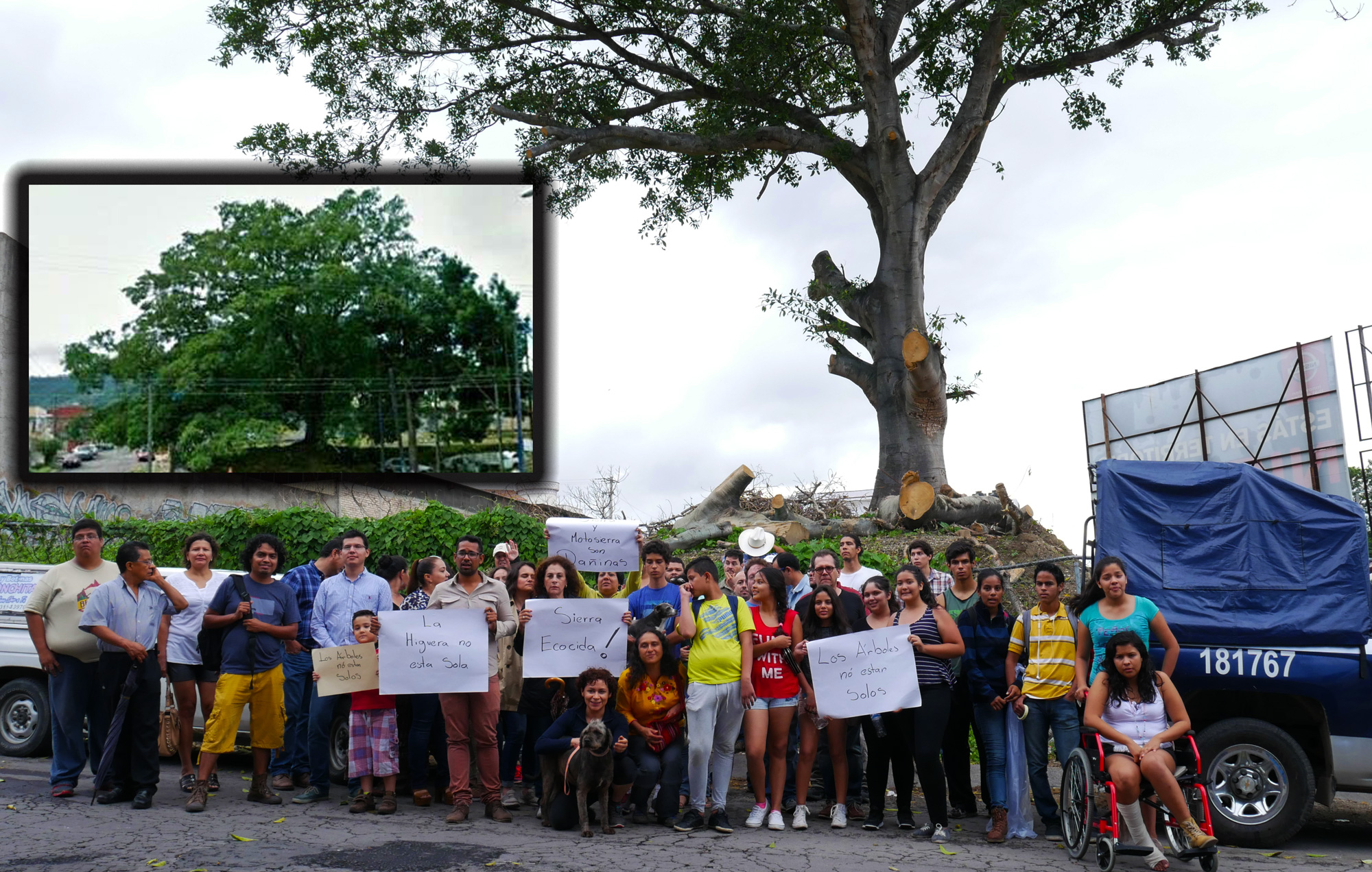 “Sierra es un ecocida” gritaban la tarde de este martes luego de cerrar la calle frente al lugar donde se ubica este árbol centenario. “Hace 12 años este mismo señor, de apellido Sierra quiso derribar todas las ceibas de la avenida insurgentes frente a su negocio, la Nissan. Logró hacerlo con algunas, pero salvamos varios ejemplares. Tuvimos que encadenarnos a los árboles pero evitamos que los tiraran” recordó el señor Raúl Maldonado, activista ambiental.