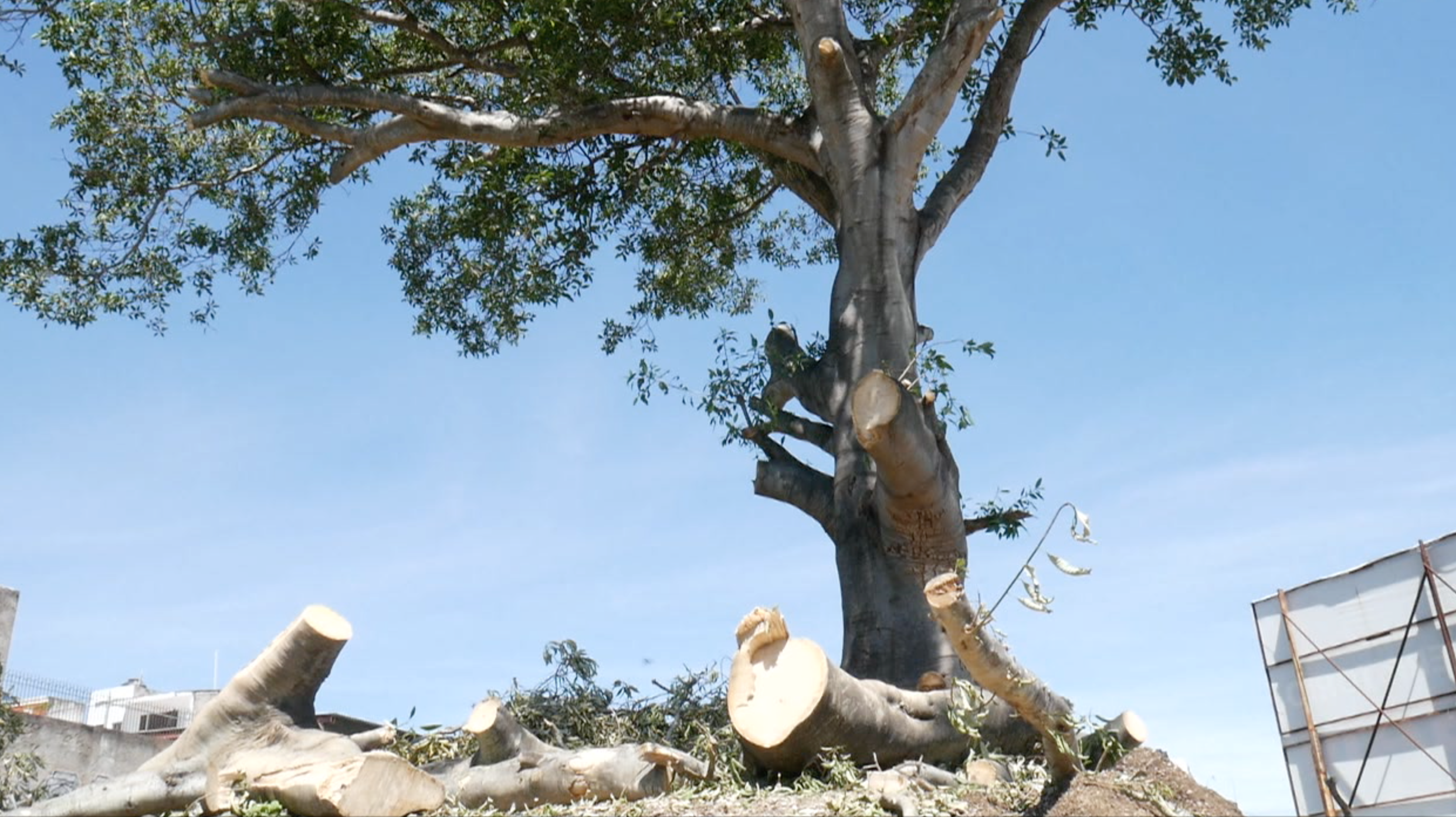 Sin importarle las protestas ni lo dicho por las autoridades del municipio, el dueño del predio actuó con total prepotencia y envió a talar la higuera, lo que fue impedido por un grupo de valientes vecinos que enfrentaron a los taladores. Sin embargo, el daño causado al árbol es significativo pues le realizaron cortes profundos en casi el 60 % del tronco.