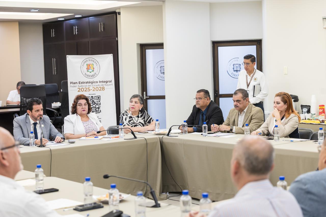 Con el propósito de conocer la opinión de la ciudadanía y de los distintos sectores de la sociedad, integrantes de la Comisión Temporal encargada de elaborar el Proyecto de Plan Estratégico Integral del Poder Judicial del Estado de Nayarit 2025–2028 continúan realizando reuniones de trabajo. En esta ocasión, sostuvieron un encuentro con representantes del sector empresarial del estado.