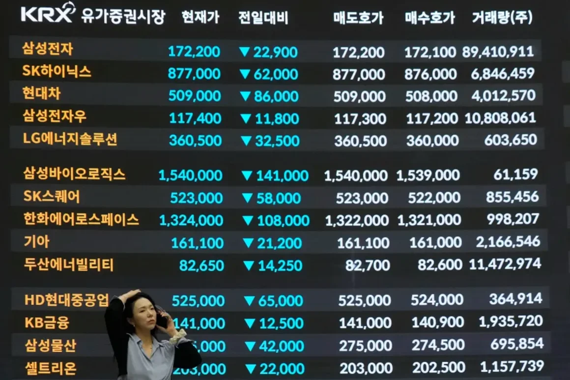 El índice de referencia Kospi de Corea del Sur se desplomó un 12 %. El índice había caído un 7,24 % el martes, situándolo al borde de un mercado bajista técnico.